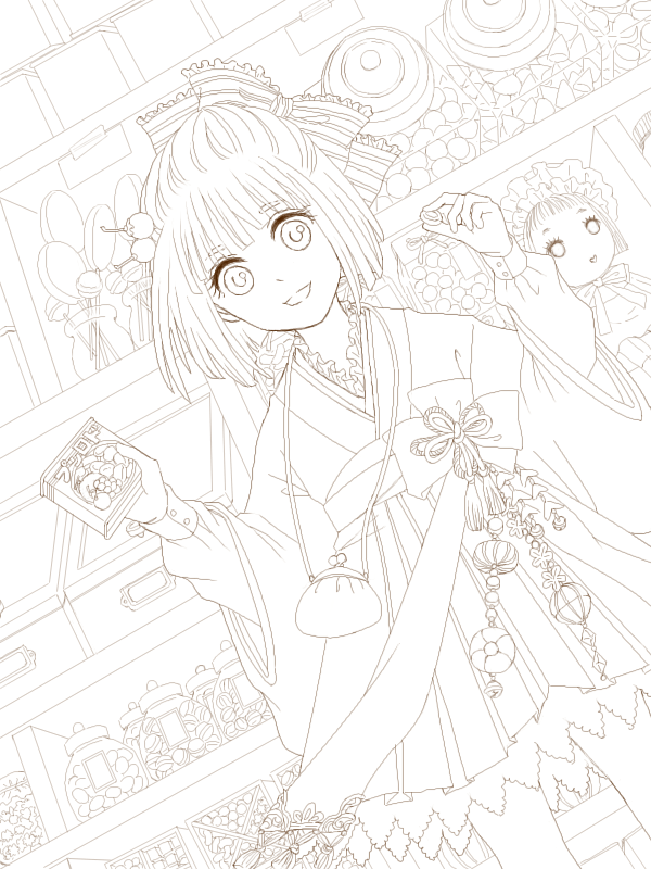 背景描きこみ過ぎてアレンジは効かないので、出そうか悩んだんですけど、塗ってくれる奇特な方がいたらそれはそれで嬉しいなーって思って、その淡い期待で投稿しましたw