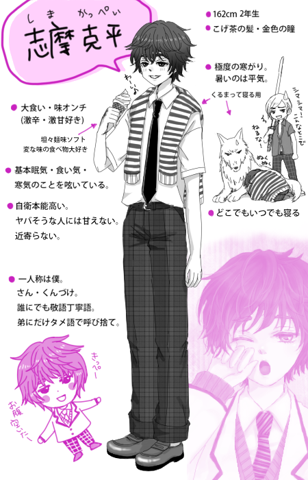 さてさて、しまこさんに学戦っ子の志摩桔平ちゃん気に入ってもらって、調子に乗ってきっぺいちゃん描こう!ってなり、しかし結局3人共描きました。