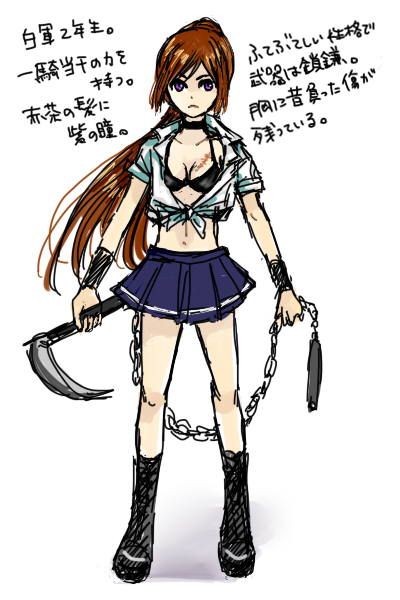 『白軍に所属する1年生。軍の参謀を務める。赤茶の髪に金色の瞳。冷静な性格で使用武器は長槍。左耳にピアスを付けている。』(YOUKIで調べたよ)
